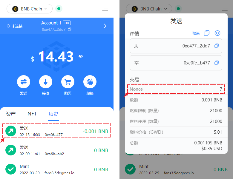 ### <mark style="color:orange;">使用自定义nonce设置转账</mark> <a href="#id-2" id="id-2"></a>