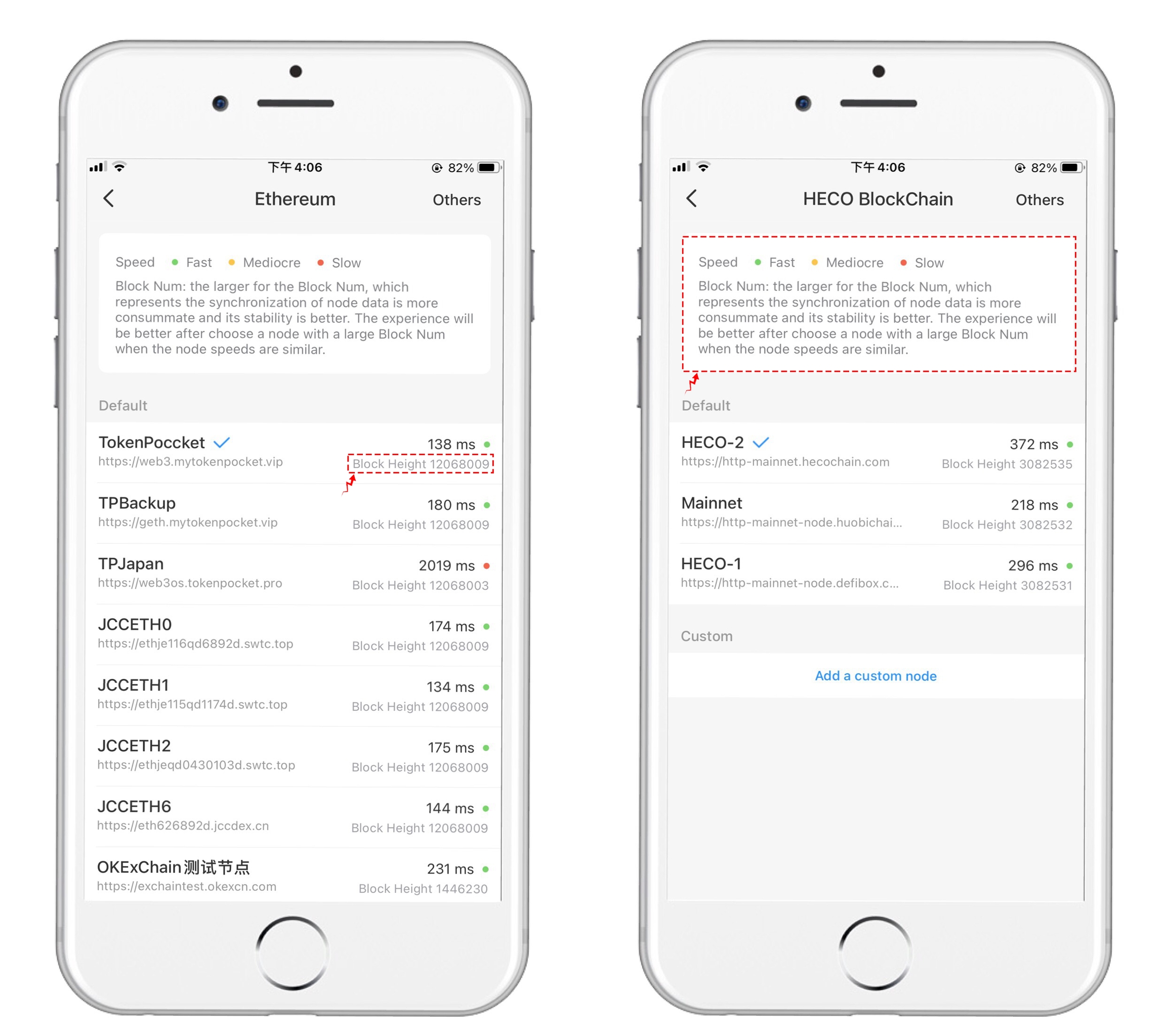 Some chain nodes are newly added to view the block height. The larger for the selected block height and the lower for the delay rate, the node can bring a better DApp experience.