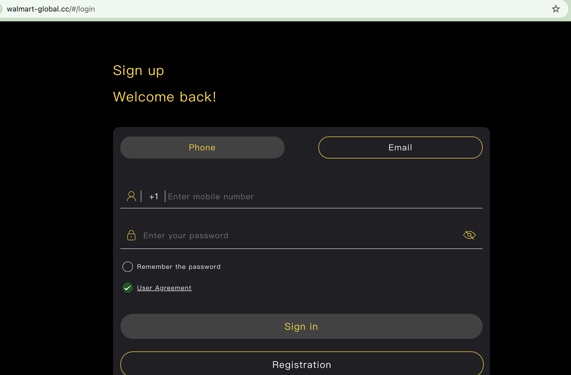 <figure><img src="https://2634619309-files.gitbook.io/~/files/v0/b/gitbook-x-prod.appspot.com/o/spaces%2F3qtItoZih7cEdFc6kPNk%2Fuploads%2FXU9FWlt0BECCe7VvG9OJ%2F%E6%88%AA%E5%B1%8F2024-01-23%2014.45.02.png?alt=media&#x26;token=68dad4f8-ef77-4fea-938f-b2cf07c2c93f" alt=""><figcaption><p>Fake Walmart scam website</p></figcaption></figure>