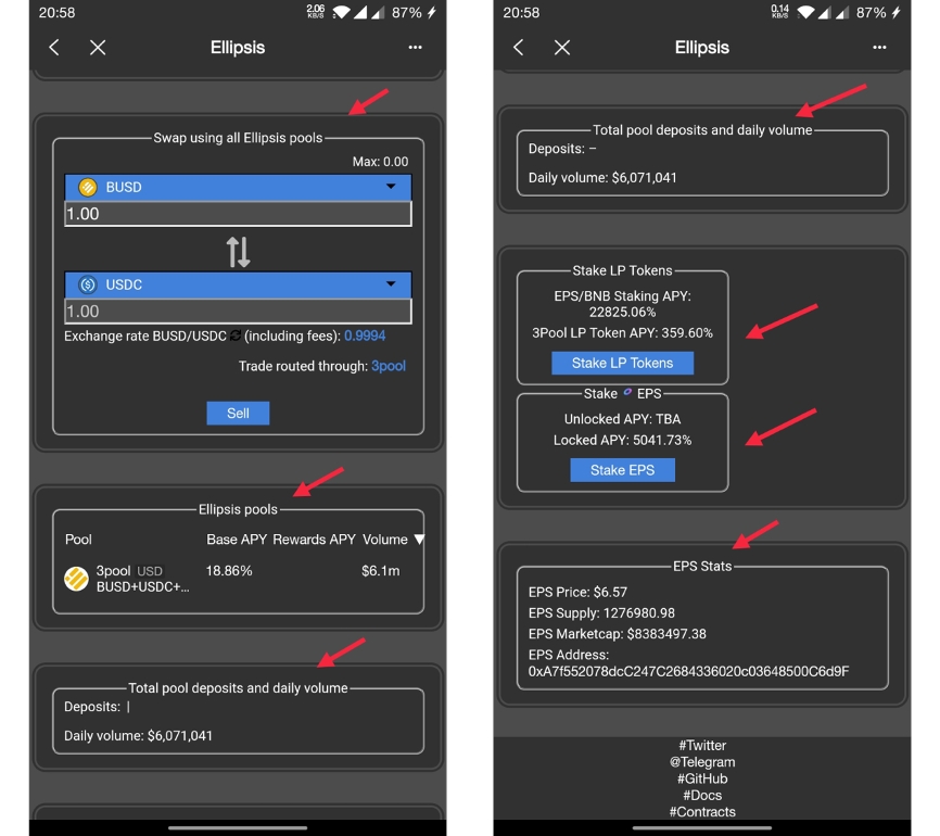 Ellipsis is primarily an inter-stable currency exchange with the advantages of low transaction slippage, high yields and single currency access.