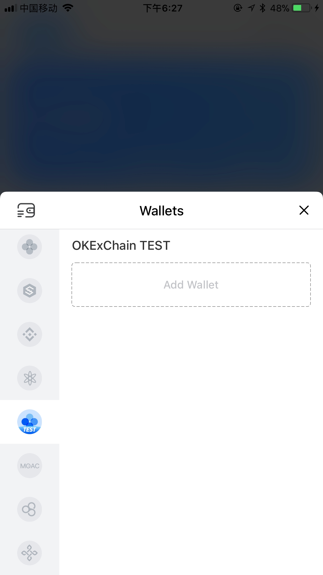 3. Choose [OKExChain TEST] wallet