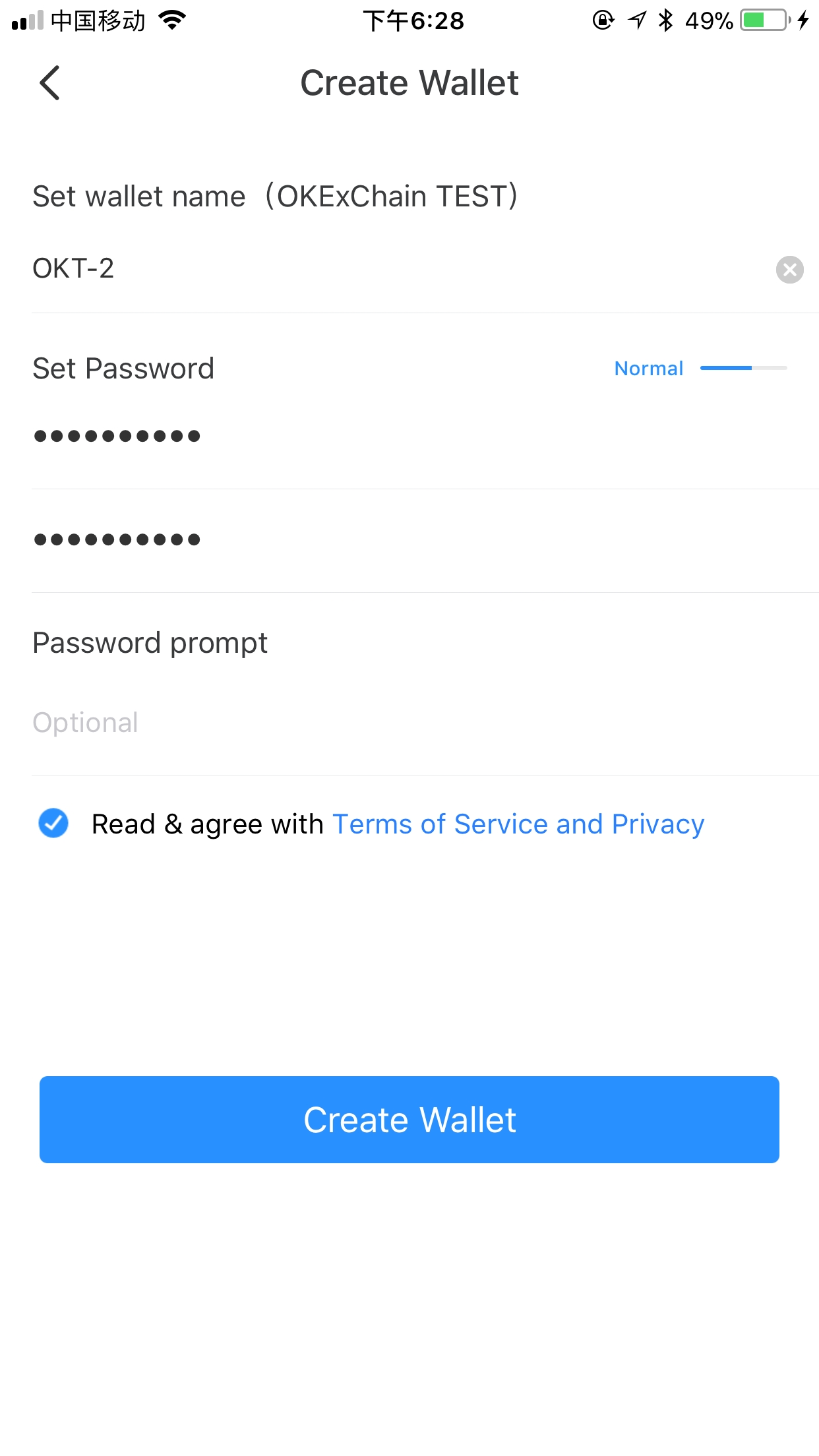 How to create the OKEx Chain Test wallet