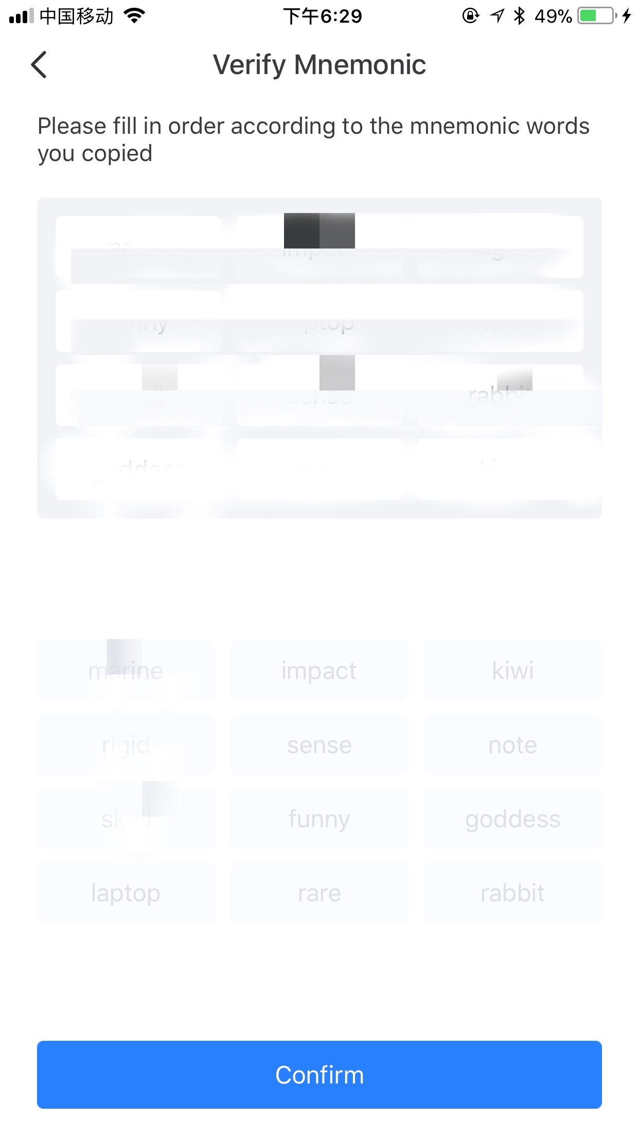 8. Type the mnemonic words you just wrote it down