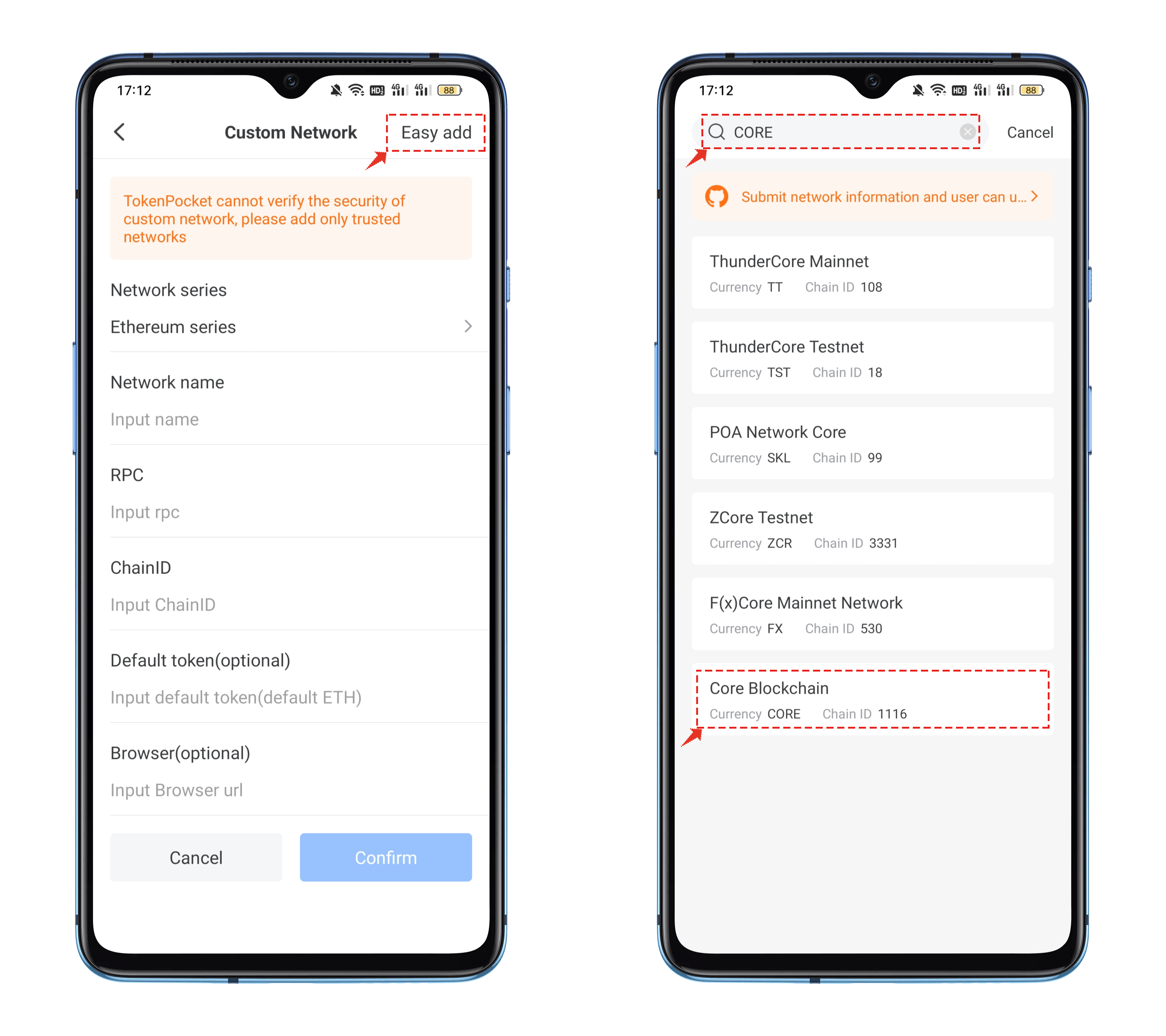 ### <mark style="color:orange;">How to add Core Blockchain on TokenPocket Moblie Wallet?</mark>