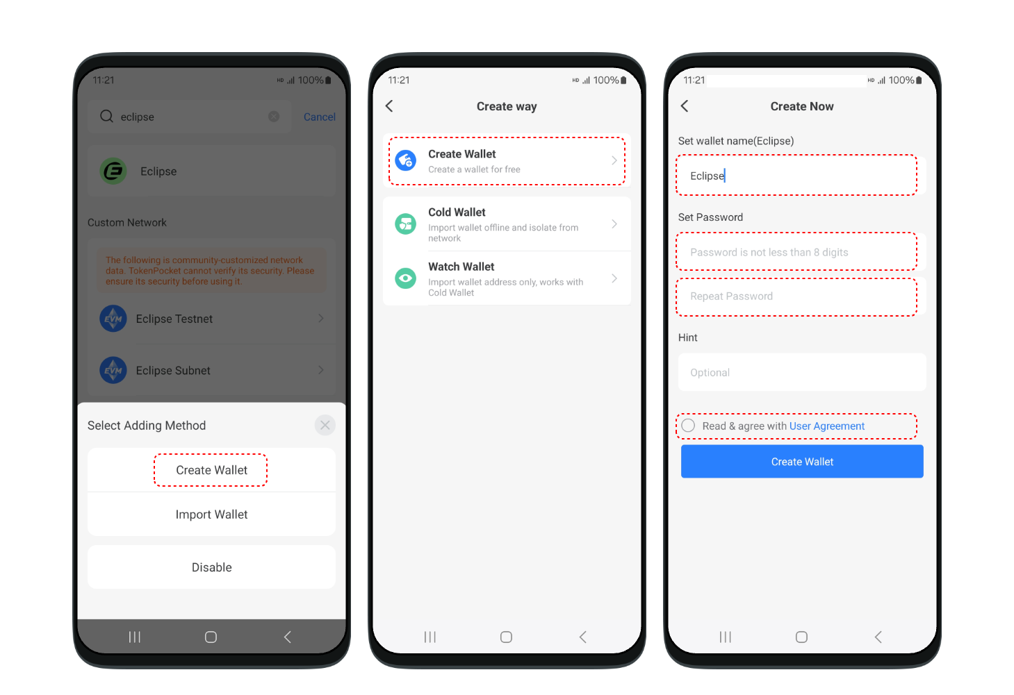 How to create a Eclipse wallet in TokenPocket?