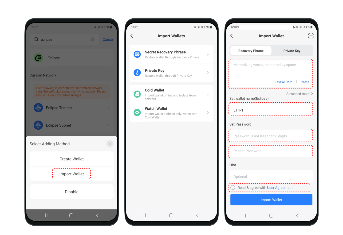 How to import a Eclipse wallet in TokenPocket?