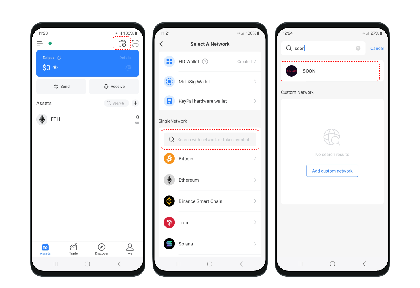 **TokenPocket** [**Mobile Wallet**](https://www.tokenpocket.pro/en/download/app) **now supports SOON network. (Android Version Above 2.4.1, iOS Soon)**