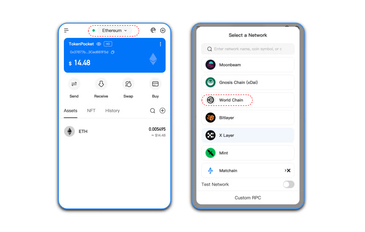 **TokenPocket** [**Mobile Wallet**](https://www.tokenpocket.pro/en/download/app) **and** [**Chrome Extension**](https://extension.tokenpocket.pro/) **now support World Chain.**