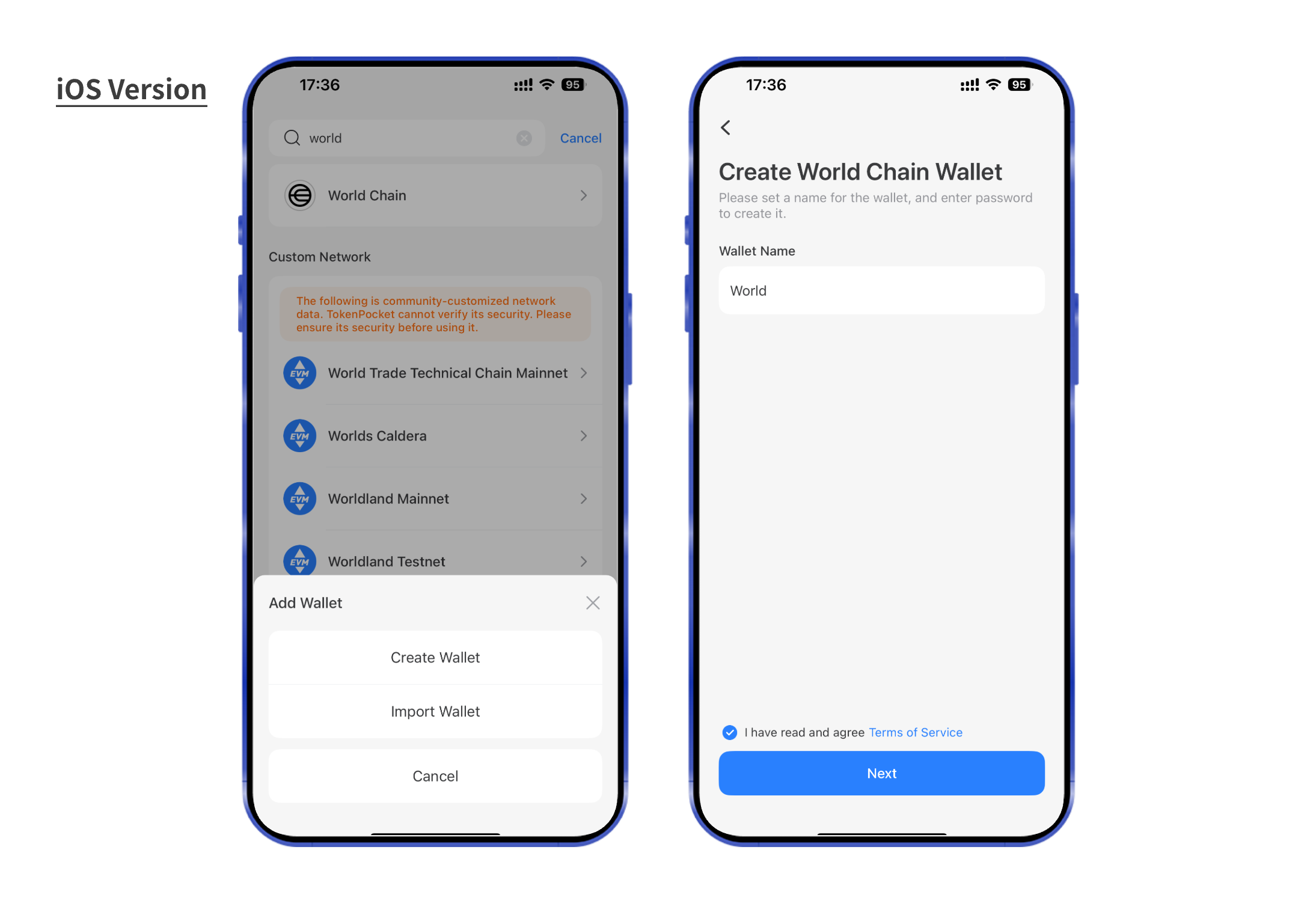 <mark style="color:purple;">>iOS Version.</mark> Click **\[Create Wallet]**, then set your wallet name.