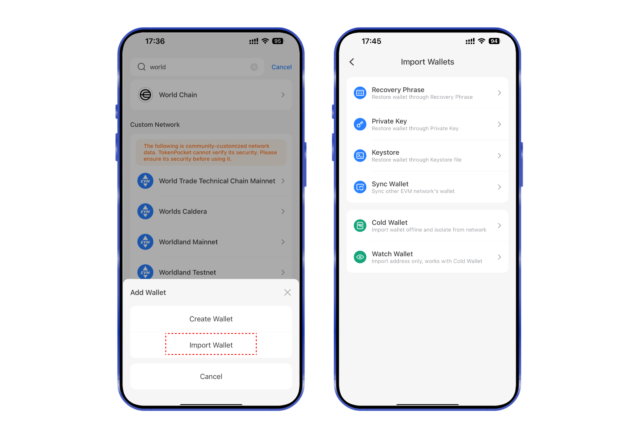 ## <mark style="color:orange;">**How to import a World Chain wallet in TokenPocket?**</mark> <a href="#how-to-create-an-etc-wallet-in-tokenpocket-1" id="how-to-create-an-etc-wallet-in-tokenpocket-1"></a>