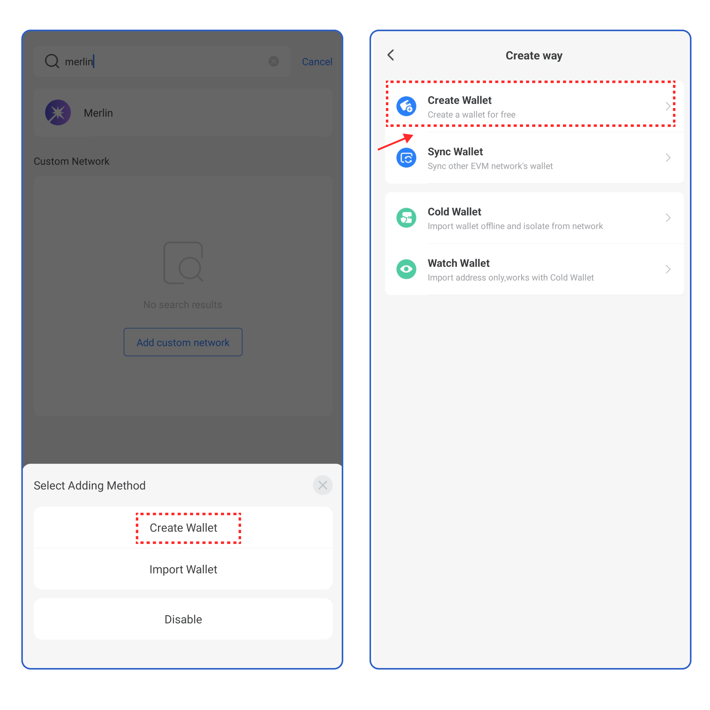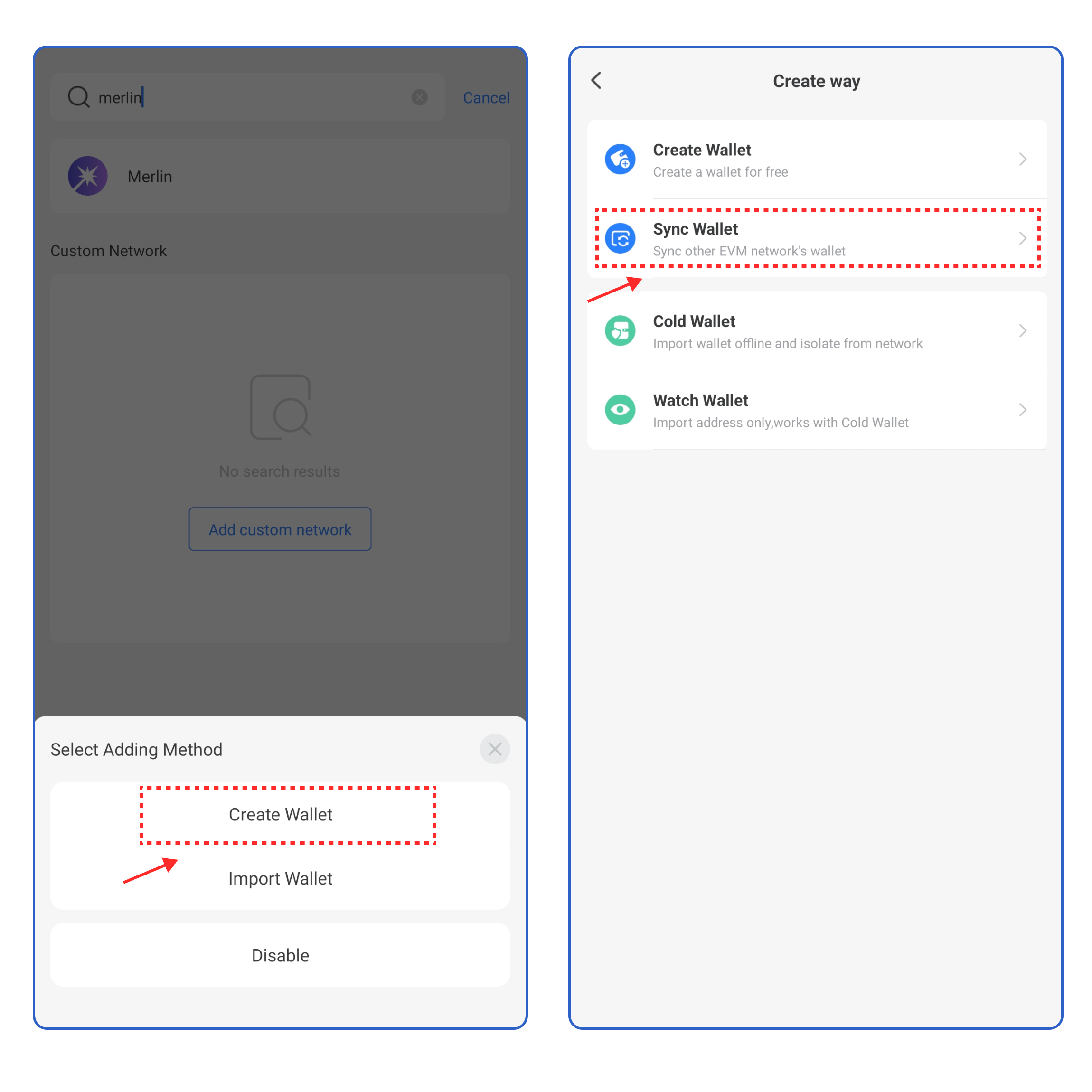 2. Click **【Create Wallet】**, click **【Sync Wallet】.**